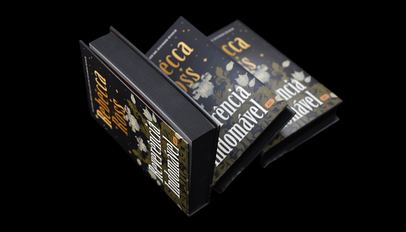 O projeto traz uma elegante capa dura impressa em couchê fosco de 150g, que aliado à laminação fosca e à pintura trilateral, garante um visual rico em detalhes e sofisticação. No miolo, temos papel Ivory Slim de 65g, com folhas de guarda em offset 150g. O livro é acompanhado de sobrecapa produzida em couchê fosco de 170g enobrecido com envernizamento brilhante.